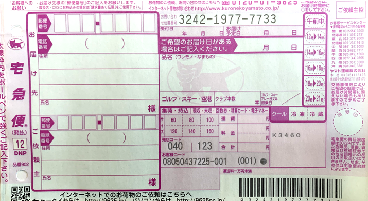 左図はヤマトの複写式の送り状です。郵便番号のように1文字ずつ入れるレイアウトでも問題ありません。