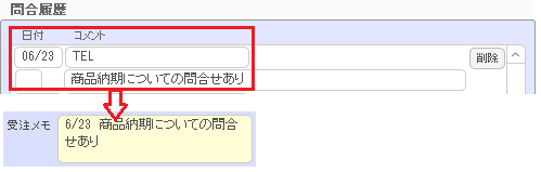 顧客マスタで登録しておいた履歴の内容を受注メモにいれるようにすることも可能です。