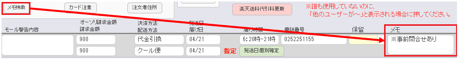 New! ④登録済の顧客からの注文取込時に受注メモを設定する