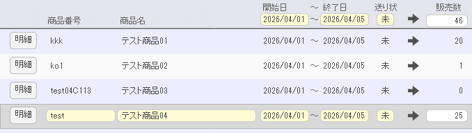 期間内に伝票処理が”済”になった数量(=販売数)が集計されます