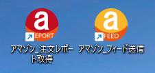 インストール完了後、デスクトップに「アマゾン_注文レポート取得」と「アマゾン_フィード送信」の2つのアイコンが作成されます。